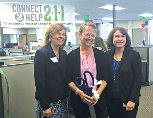 Indiana State Representative Carey Hamilton, Past-Executive Director of Connect2Help211 Lynn Engel and current Connect2Help211 Executive Director Ann Hartman (l-r) at the grand opening of the nonprofit’s new headquarters.