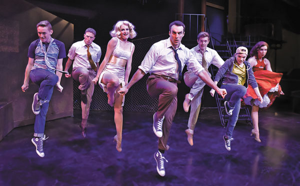 The Jets, led by Riff (Ben Cullen), center, learn to play it “Cool” as they anticipate a rumble with the rival gang the Sharks in Beef & Boards Dinner Theatre’s current production of West Side Story. For reservations, call the box office at 317-872-9664. For details, including complete show schedule and buffet menu, visit beefandboards.com.