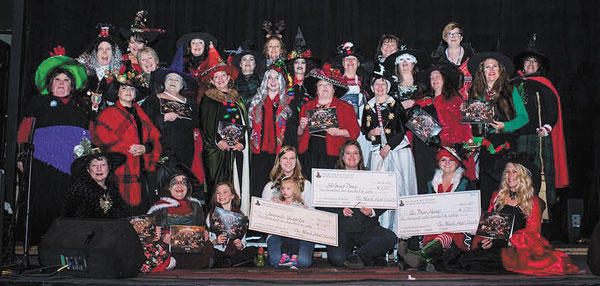 Photo by Michael Sullivan The Black Hat Society presenting checks totalling $7,200 to three charities in the Irving Theatre last Fri., Dec. 8th.