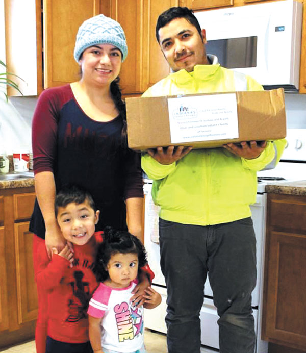 submitted photo Gustavo Espita and Araceli Hernandez and their two children received donations from Indiana’s Family of Farmers Dec. 15.