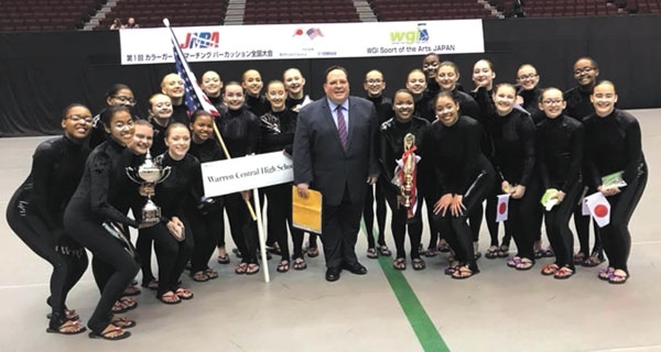 submitted photo photo courtesy WGI The Warren Central Winter Guard, with Director Director Jeff Wroblewski after winning their contest in Japan.
